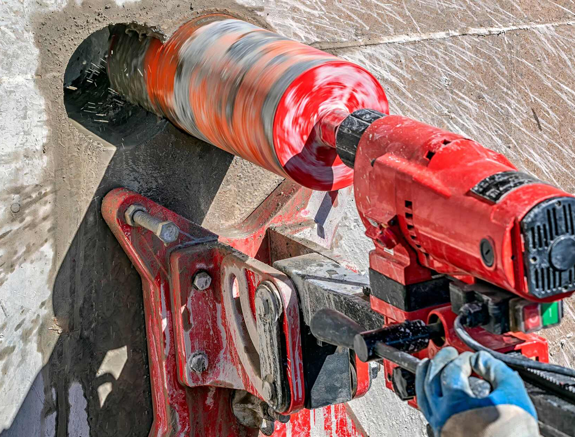 Precision drilling of perfectly round holes in concrete, brick, and stone. Used for pipes, cables, ventilation, and utility lines.